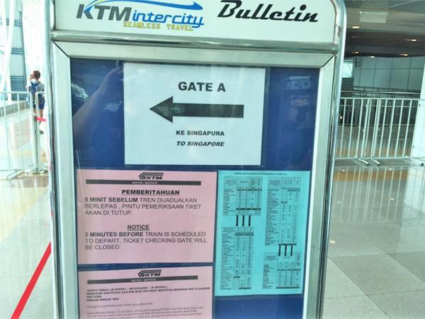 Saya berjalan-jalan untuk melihat ke mana saya perlu pergi seterusnya. Di sana, mereka telah sediakan papan tanda arah. Oleh kerana tren dari Johor Bahru menuju ke dua hala, utara dan selatan, terdapat dua gate yang berbeza untuk destinasi berlainan. Gate A adalah tren menghala ke selatan dan Gate B untuk tren menghala ke utara.
